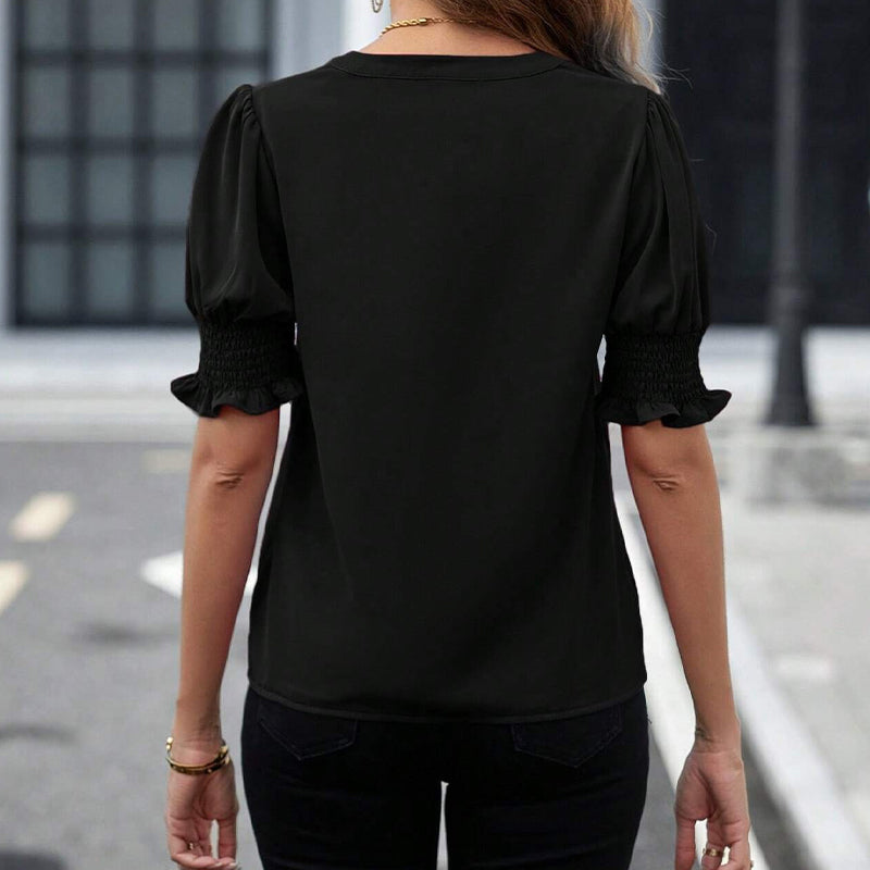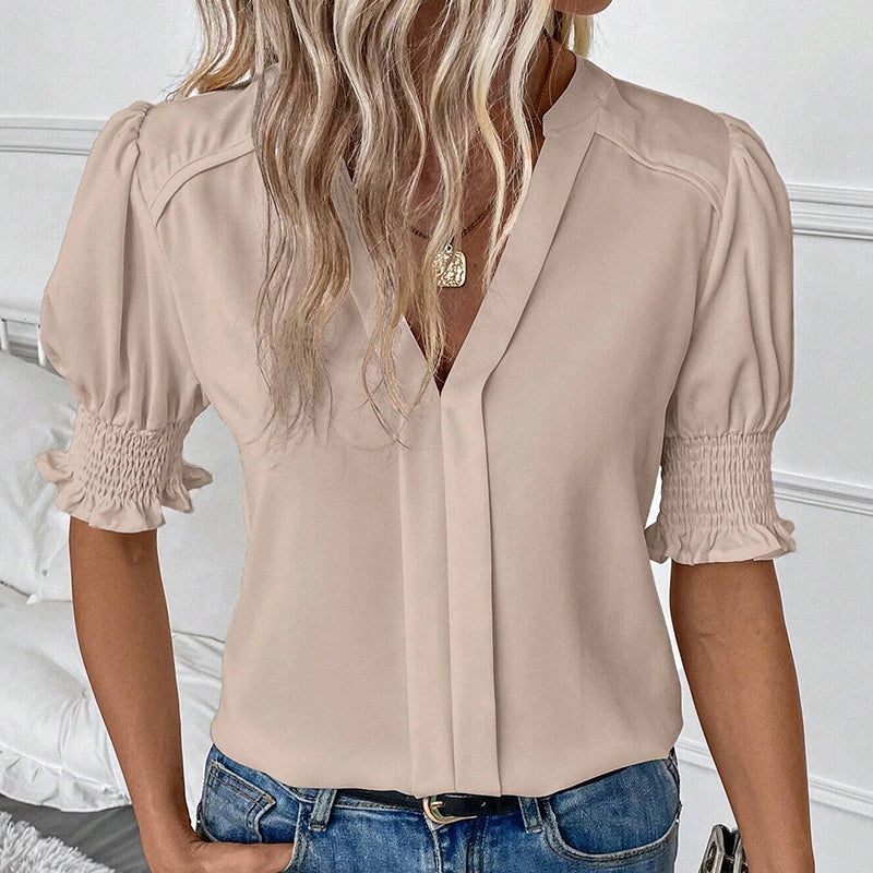 - Vielseitig kombinierbar: Der moderne V-Ausschnitt und das dezente Muster ermöglichen es dir, die Bluse sowohl casual als auch elegant zu stylen – ideal mit Jeans, Röcken oder unter einem Blazer.