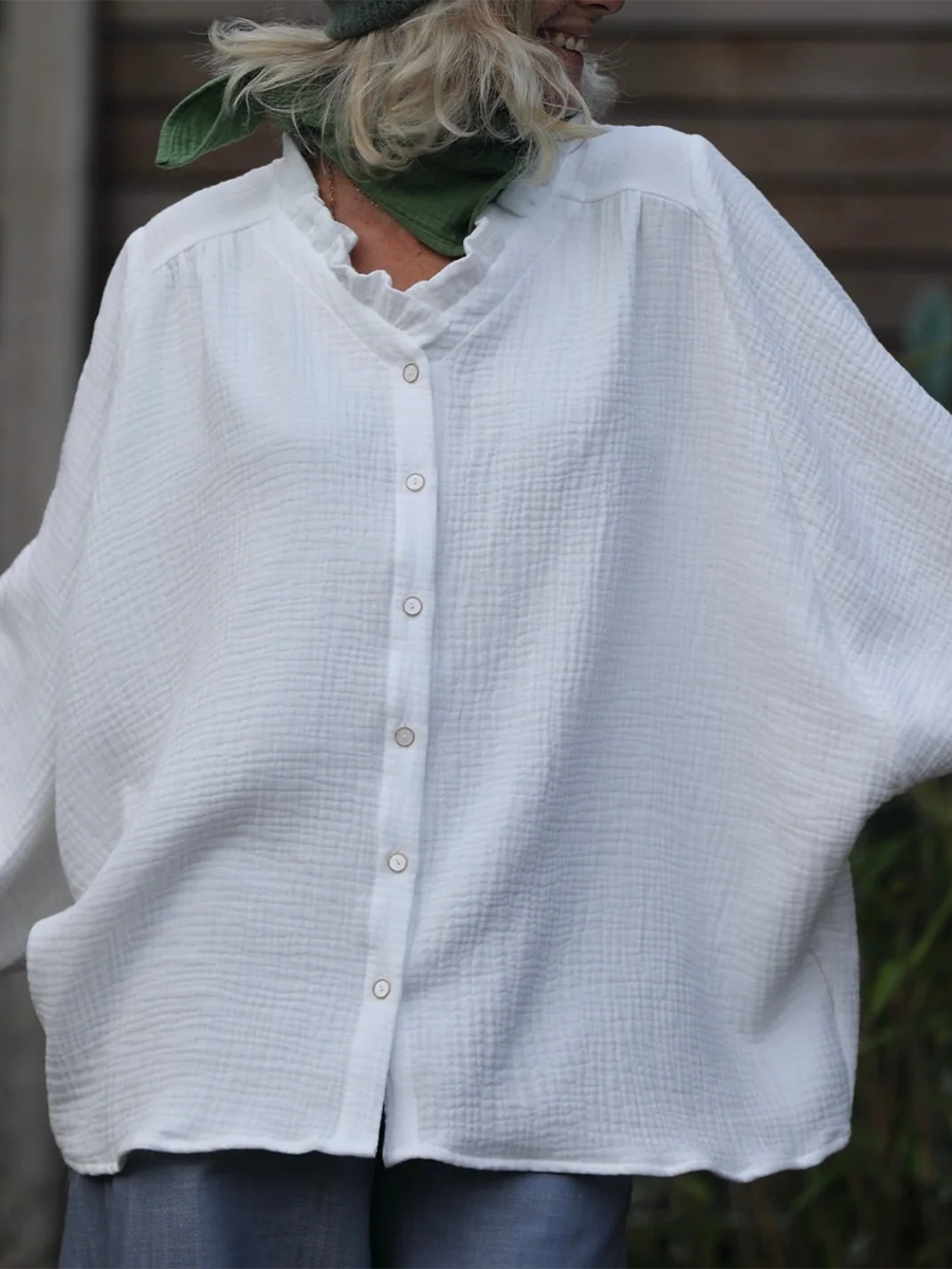 - Müheloser Stil: Der lockere Schnitt mit elegantem Kragen umspielt deine Figur und passt zu jedem Look.