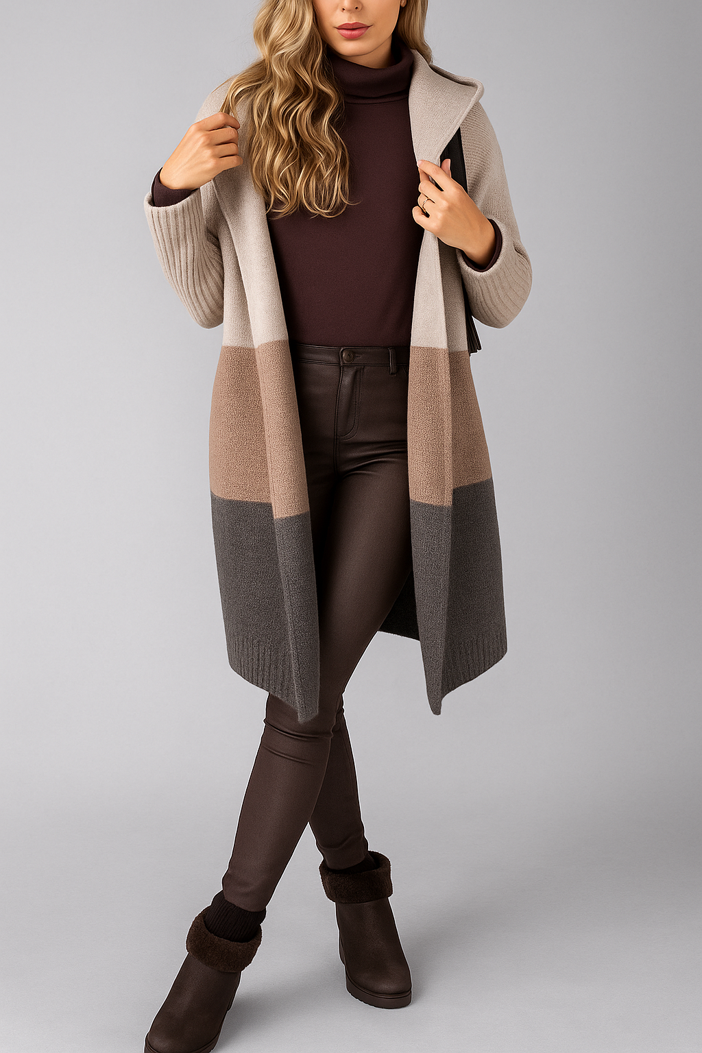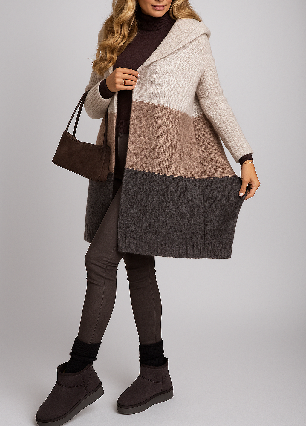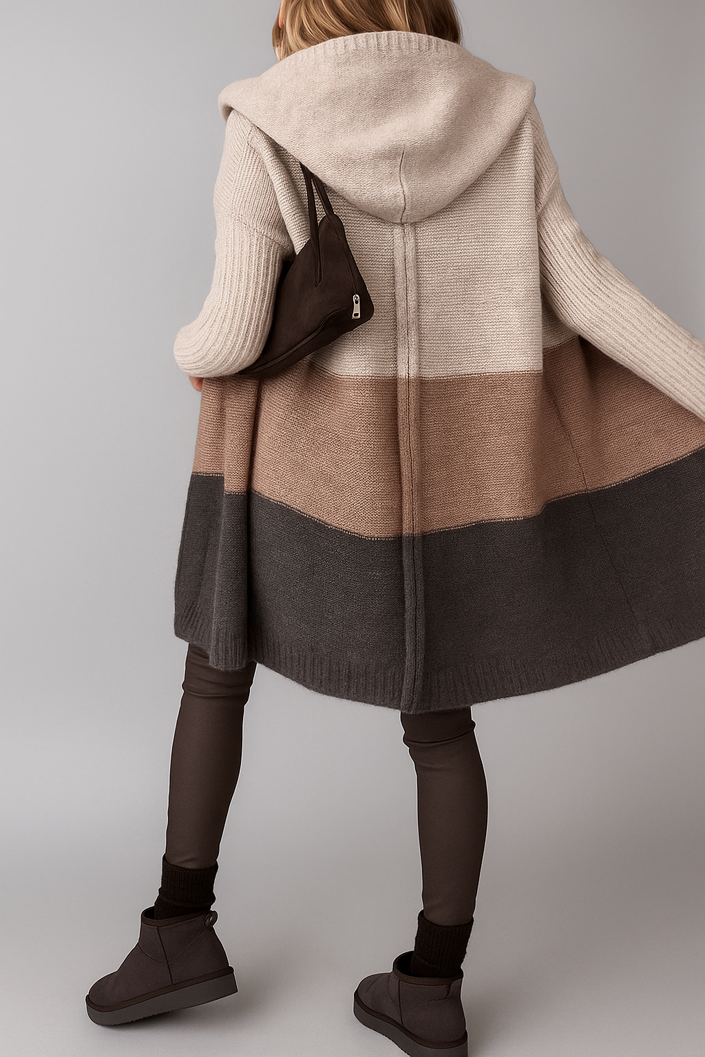 Mit seiner neutralen Farbpalette in Schwarz, Grau und Beige ist der Emilia Cardigan Hoodie unglaublich vielseitig und lässt sich mühelos mit Jeans, Leggings oder Röcken kombinieren.