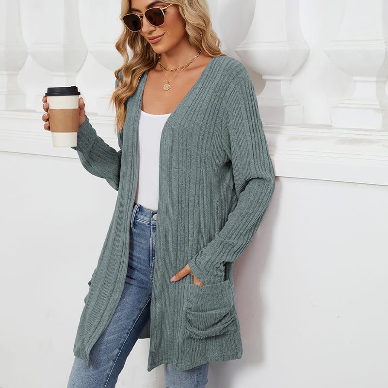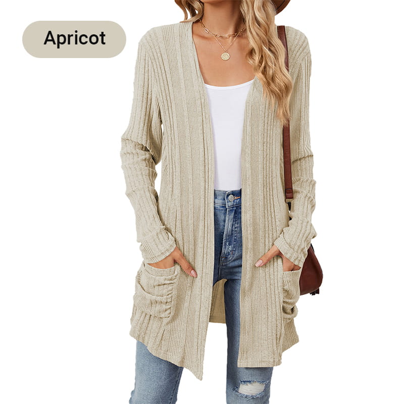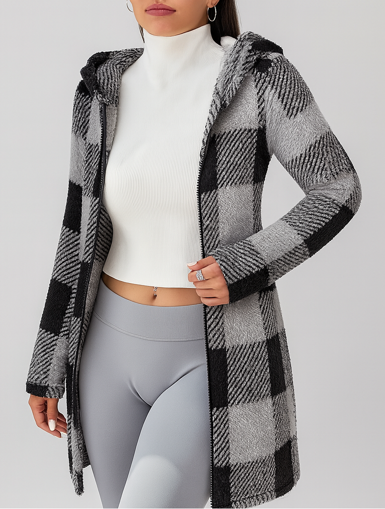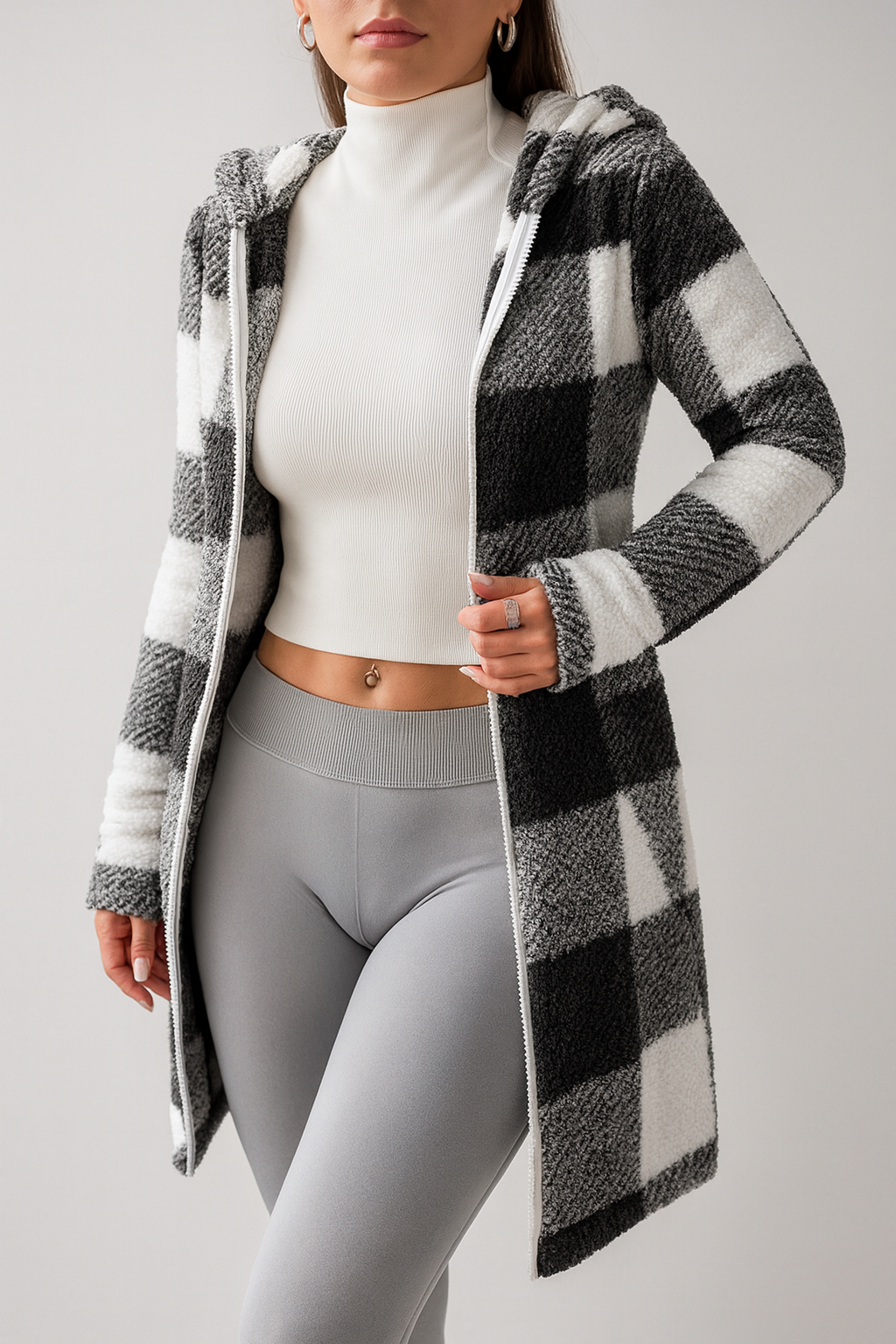Mit seiner neutralen Farbpalette in Schwarz, Grau und Beige ist der Emilia Cardigan Hoodie unglaublich vielseitig und lässt sich mühelos mit Jeans, Leggings oder Röcken kombinieren.