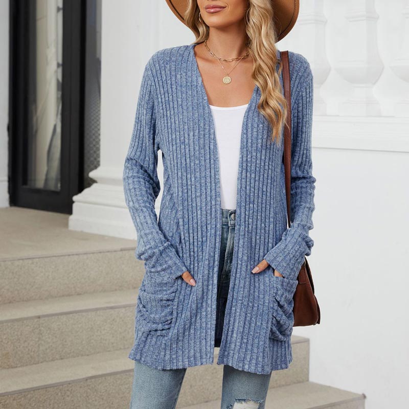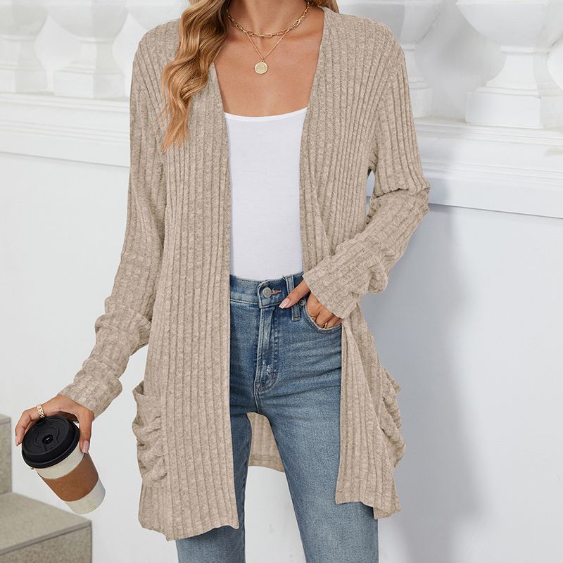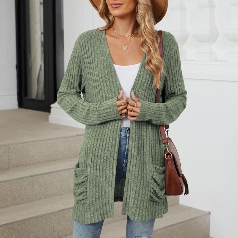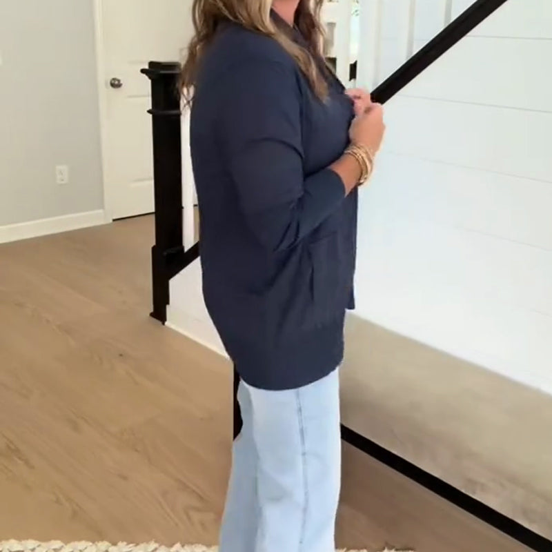 Die Luna Strickjacke mit V-Ausschnitt und Taschen ist genau das, was du brauchst, um dich stilvoll und gleichzeitig rundum wohlzufühlen.
