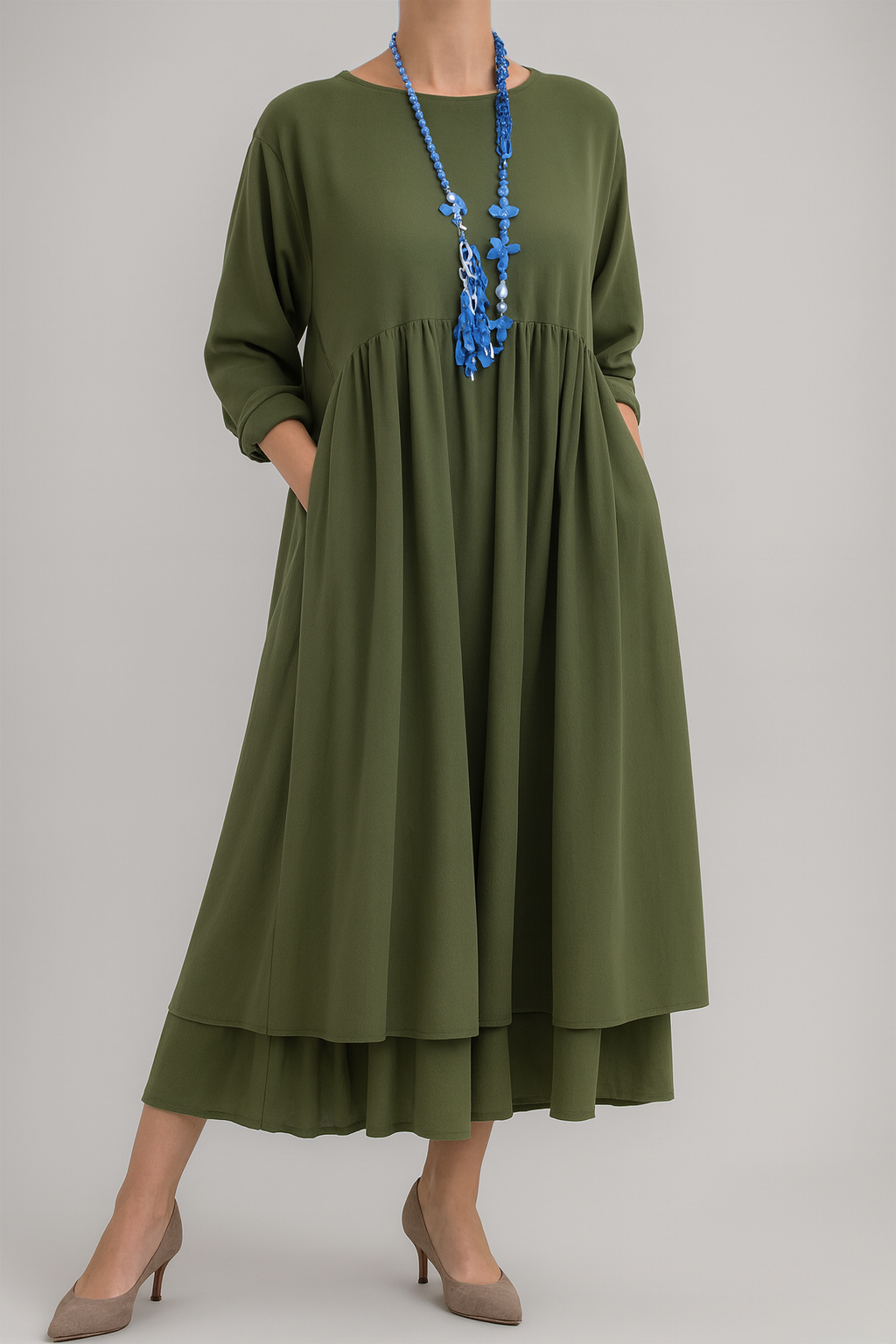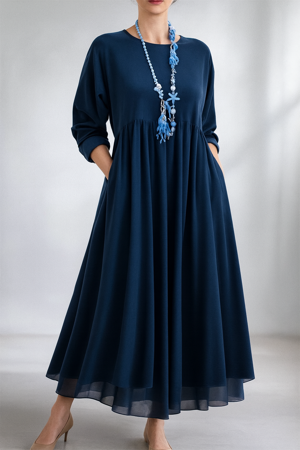 Stell dir ein Kleid vor, das dir schon beim Anziehen das Gefühl gibt, leichter zu werden – frei, weich, ganz du. Ein Midikleid, das dich umhüllt, ohne dich festzuhalten, und dir zugleich diese leise, feminine Ausstrahlung schenkt, die den ganzen Tag anhält.
