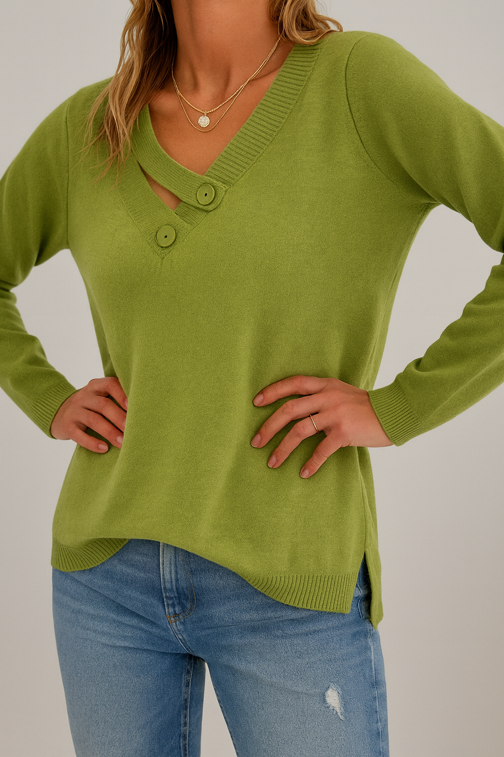 Der Mara Pullover mit V-Ausschnitt umschmeichelt deine Figur mit zeitloser Leichtigkeit und schenkt dir eine elegante, feminine Ausstrahlung.