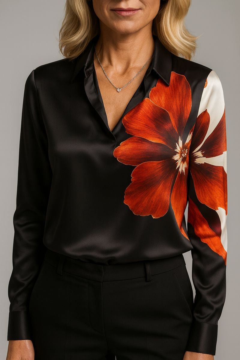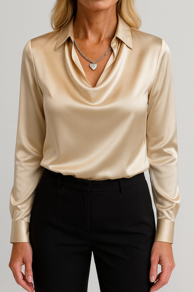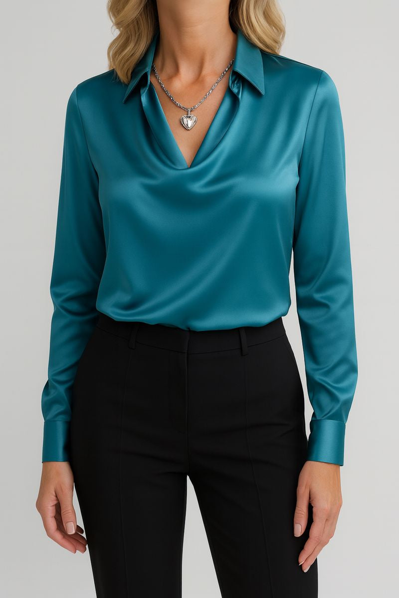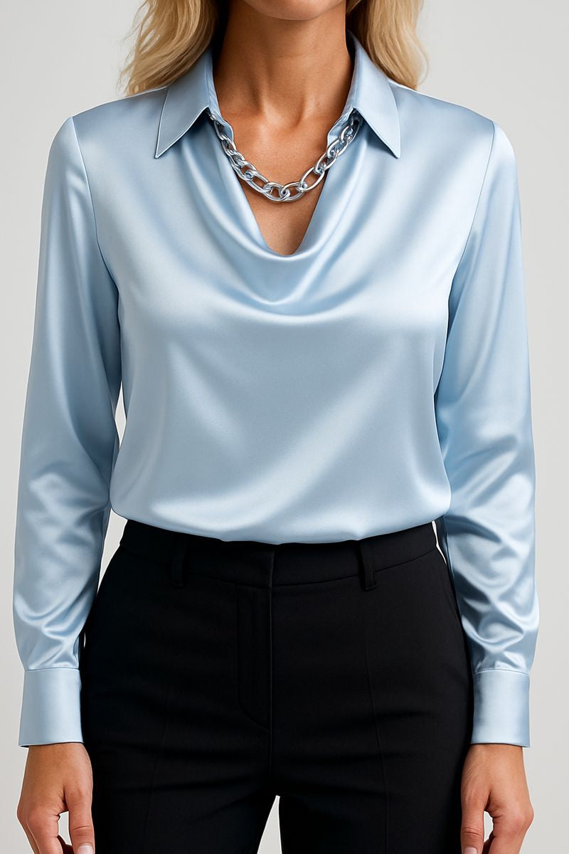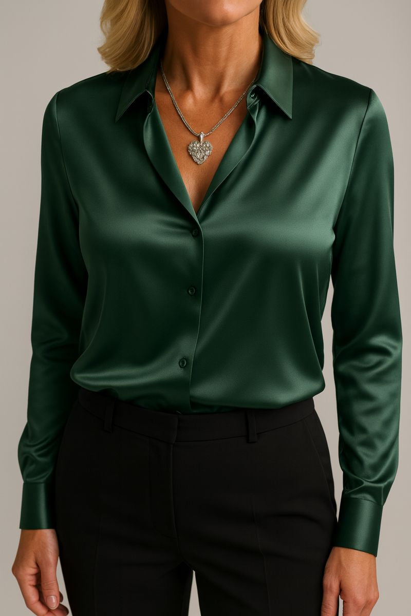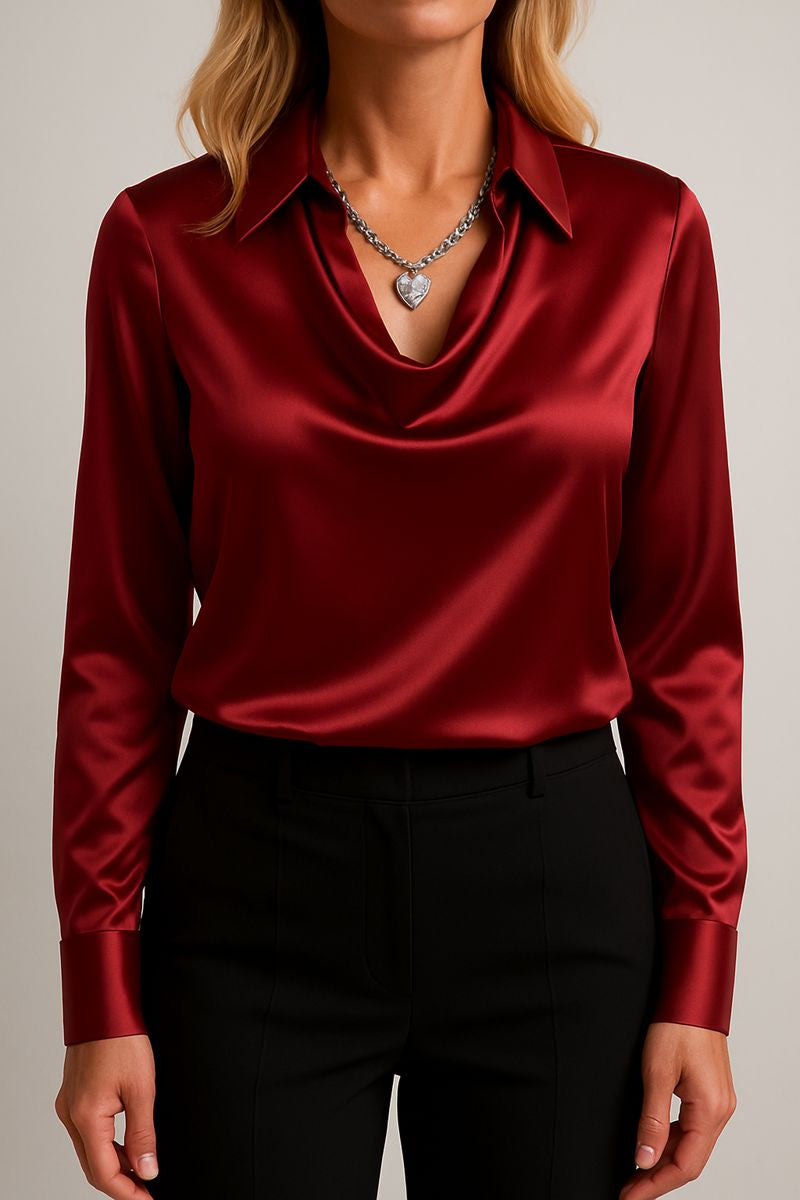 Berta ist die Bluse, die dir dieses stille, strahlende Selbstvertrauen schenkt – das Gefühl, mühelos elegant zu wirken, ganz gleich, wohin dein Tag dich führt. Du ziehst sie an und spürst sofort, wie weich sie fällt, wie luxuriös sie glänzt und wie klar deine feminine Ausstrahlung hervortritt.