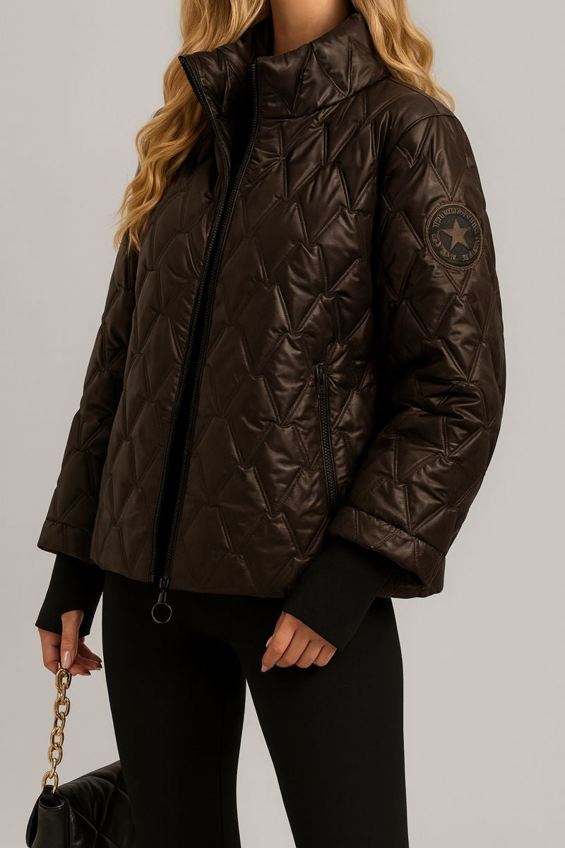 Elma ist die Jacke, die dir an kalten Tagen dieses beruhigende Gefühl von Geborgenheit schenkt – und dich gleichzeitig so elegant wirken lässt, als würdest du mühelos durch den Winter schweben. Du schlüpfst hinein und spürst sofort die warme Umarmung, die deine Haltung stärkt und deine Ausstrahlung verfeinert.